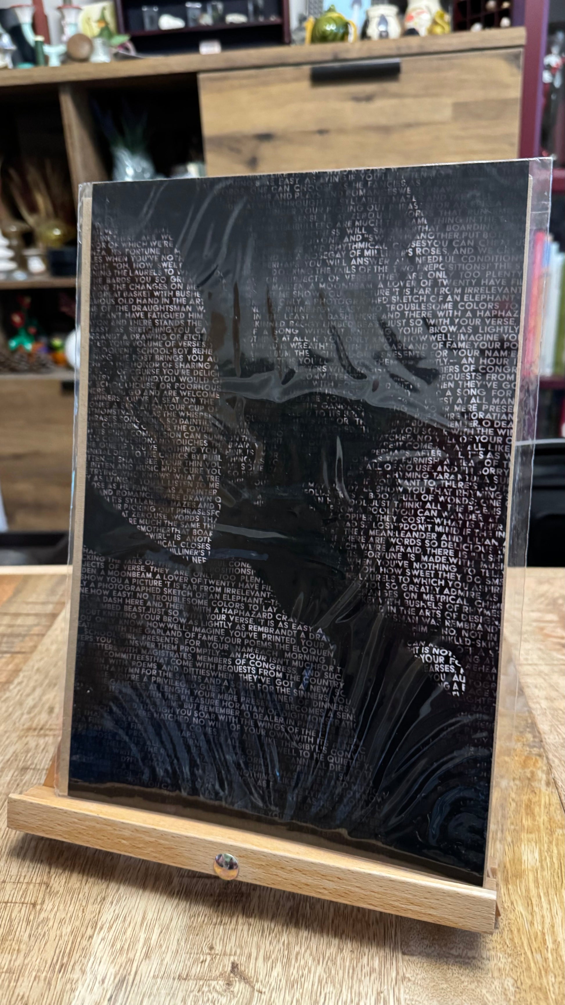 Picture of an elephant, made up of the words of an old Russian poem about elephants.